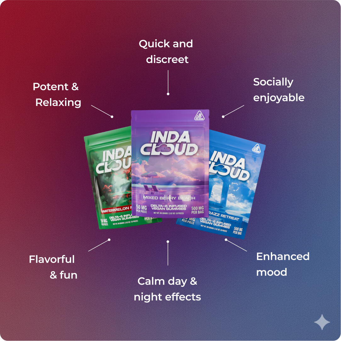 Compared to other Delta 8 products in the market, the Delta 8 Vegan Gummies from Indacloud stand out due to their high potency. Each gummy offers a significant dose of 50mg of Delta 8 THC, which tends to be higher than what most other Delta 8 products provide. As a result, each gummy can offer a prolonged effect, generally lasting up to 6 to 8 hours. This makes the Delta 8 Vegan Gummies an excellent choice for those seeking a long-lasting, potent cannabinoid experience.