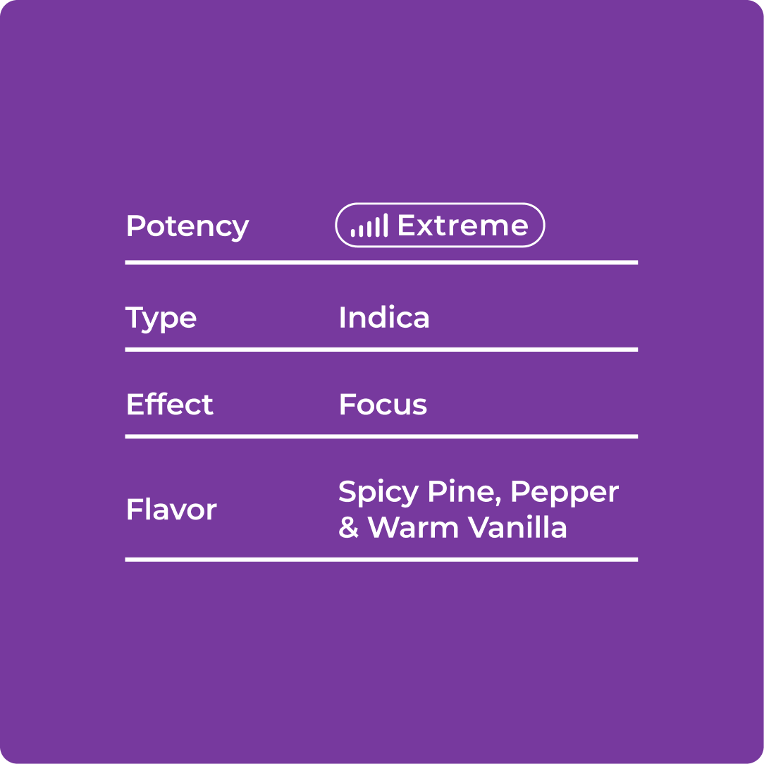 Upon exhale, the flavor deepens, revealing hints of pepper, musk, and warm vanilla, leaving behind a smooth yet potent finish. The balance of sweet and spicy makes every hit a satisfying sensory journey.