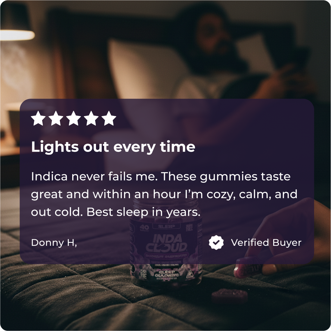 Restful, deep sleep within reach. Each Bliss gummy combines THC, CBN, melatonin, GABA, and L‑theanine for sugar free bedtime bliss without morning fog.